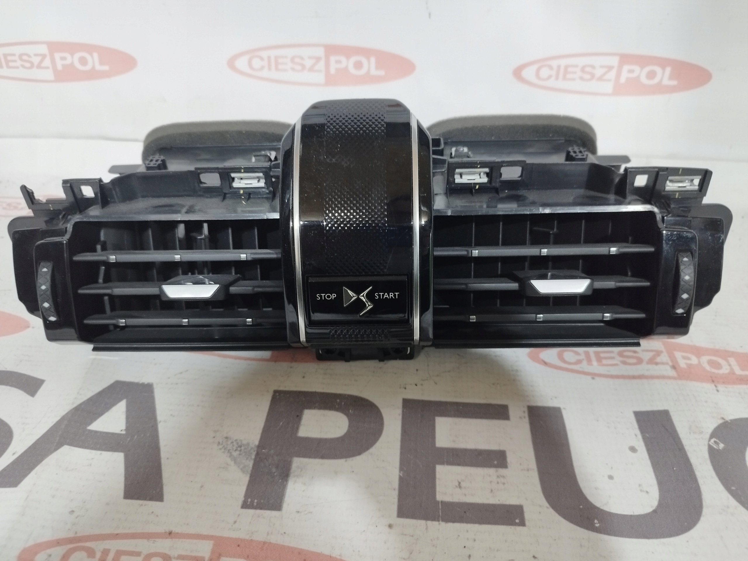 Kratka nawiewu środkowa deski rozdzielczej do Citroen DS 7 Crossback,przycisk start stop,uszkodzone jedno mocowanie widoczne na foto ,oryginał 98163051DX .