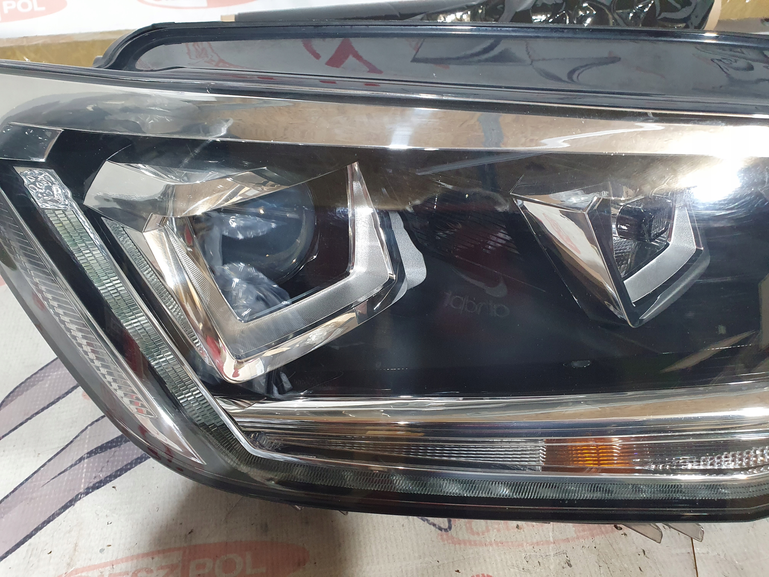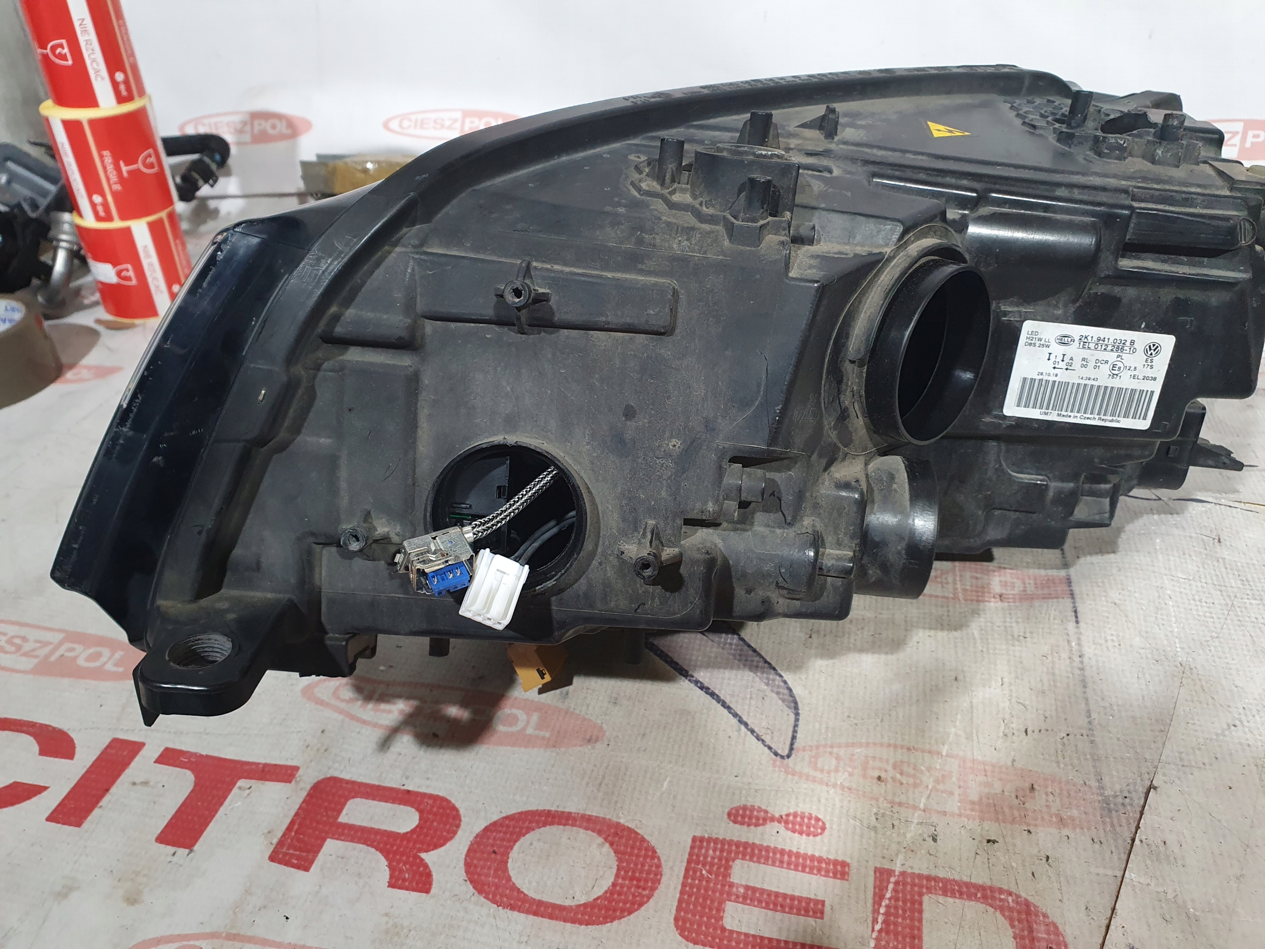 Przedmiotem aukcji jest przednia prawa lampa Xenon+ Led pasująca do VW Caddy 2K1 Lift 2015> , lampa ma urwany jeden uchwyt montażowy i drugi nadpęknięty widoczne na foto , klosz ładny , oryginał o nr 2K1.941.032 B.