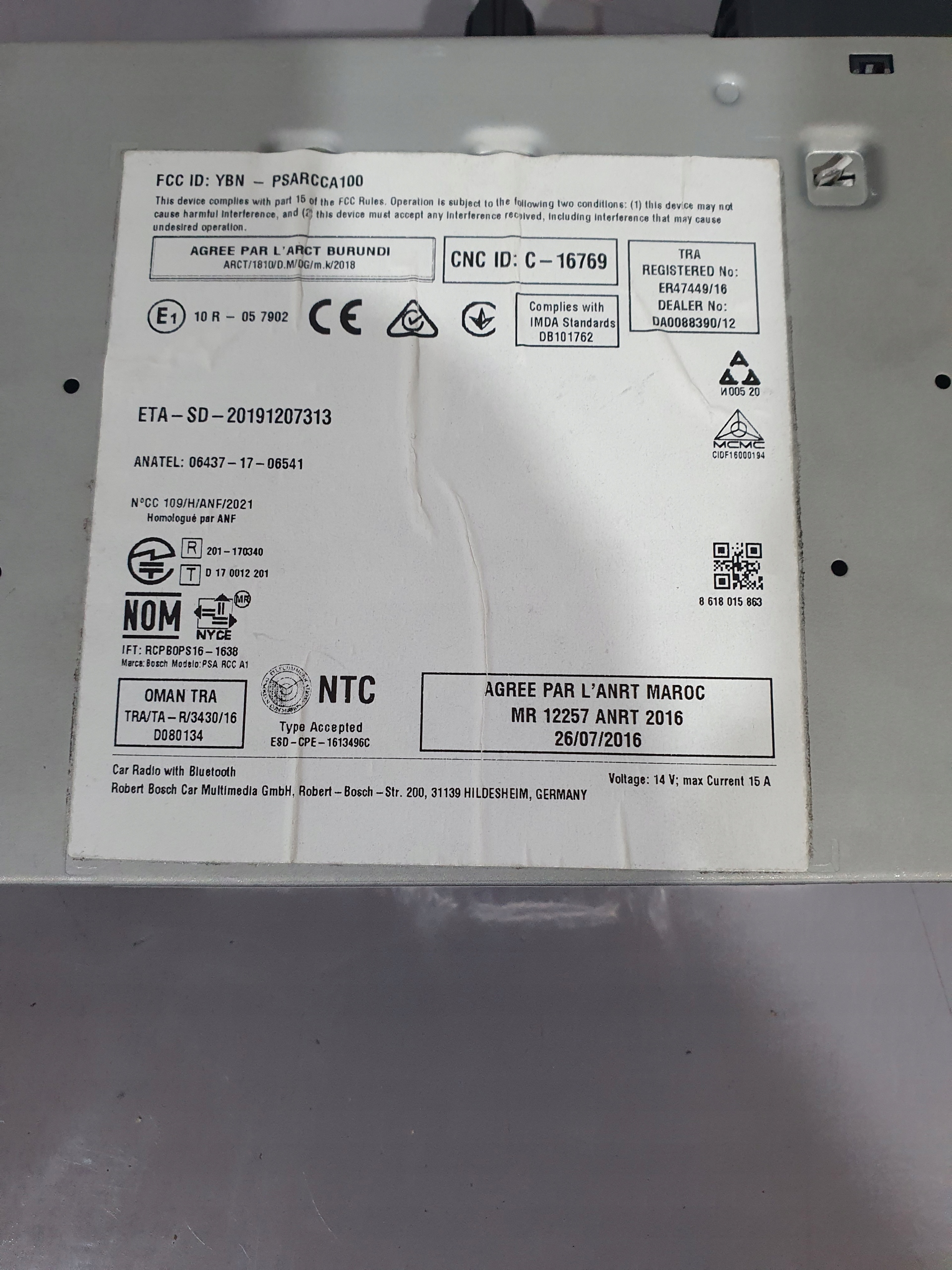 NAWIGACJA RADIO BOSCH PSA RCC A1 CITROEN PEUGEOT ORG 9841575380