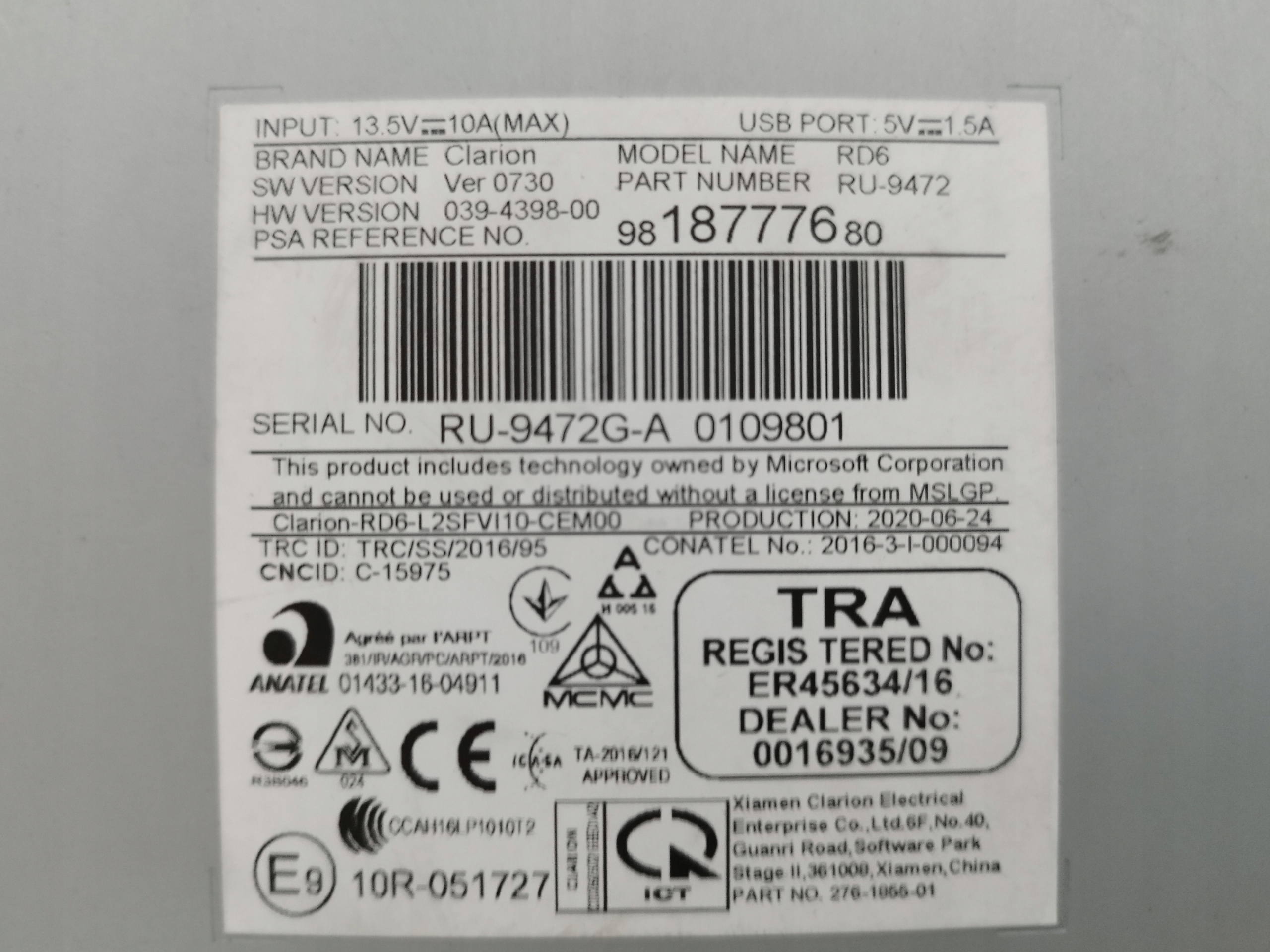 Przedmiotem aukcji jest radio nawigacja Clarion RD 6 pasująca do Opel Combo E,Citroen Berlingo ,Toyota Proace,Peugeot Expert III,Citroen Berlingo,stan idealny,oryginał o nr 9818777680
