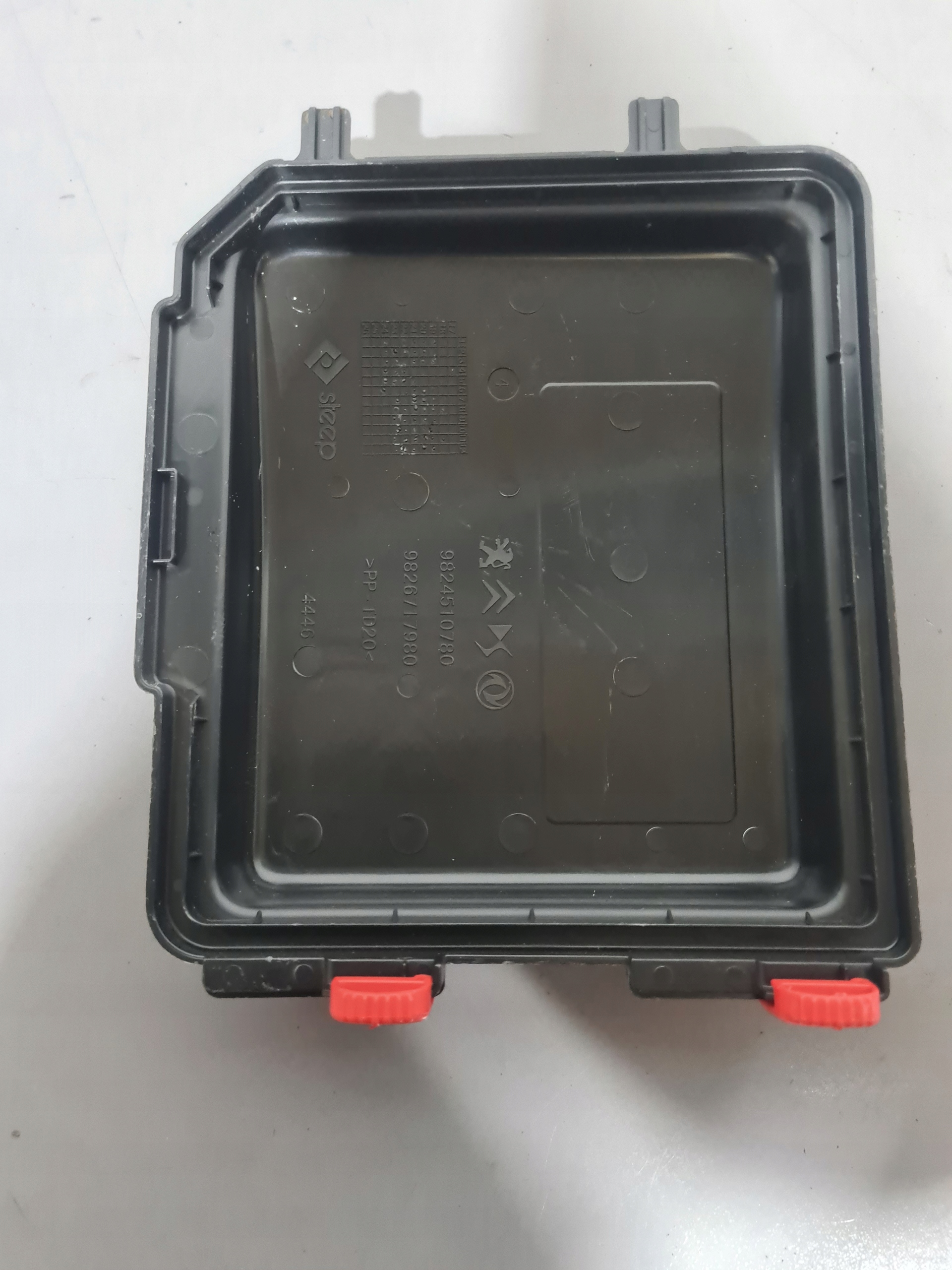 Przedmiotem aukcji jest górna pokrywa skrzynki bezpieczników pasująca do grupy PSA , Citroen , Opel , Peugeot , stan bardzo dobry , oryginał o nr 9824510780.