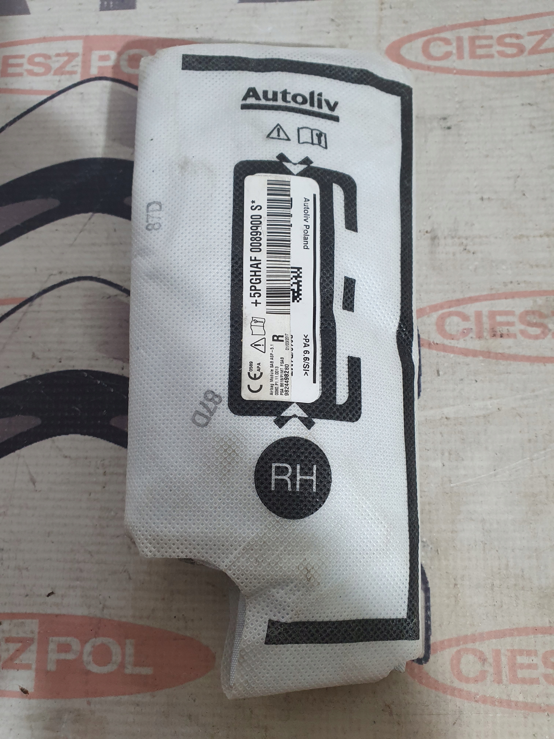 Przedmiotem aukcji jest poduszka fotela prawa boczna airbag pasująca do Citroen C3 III 2016> ,stan bardzo dobry ,oryginał o nr 9824498280 .