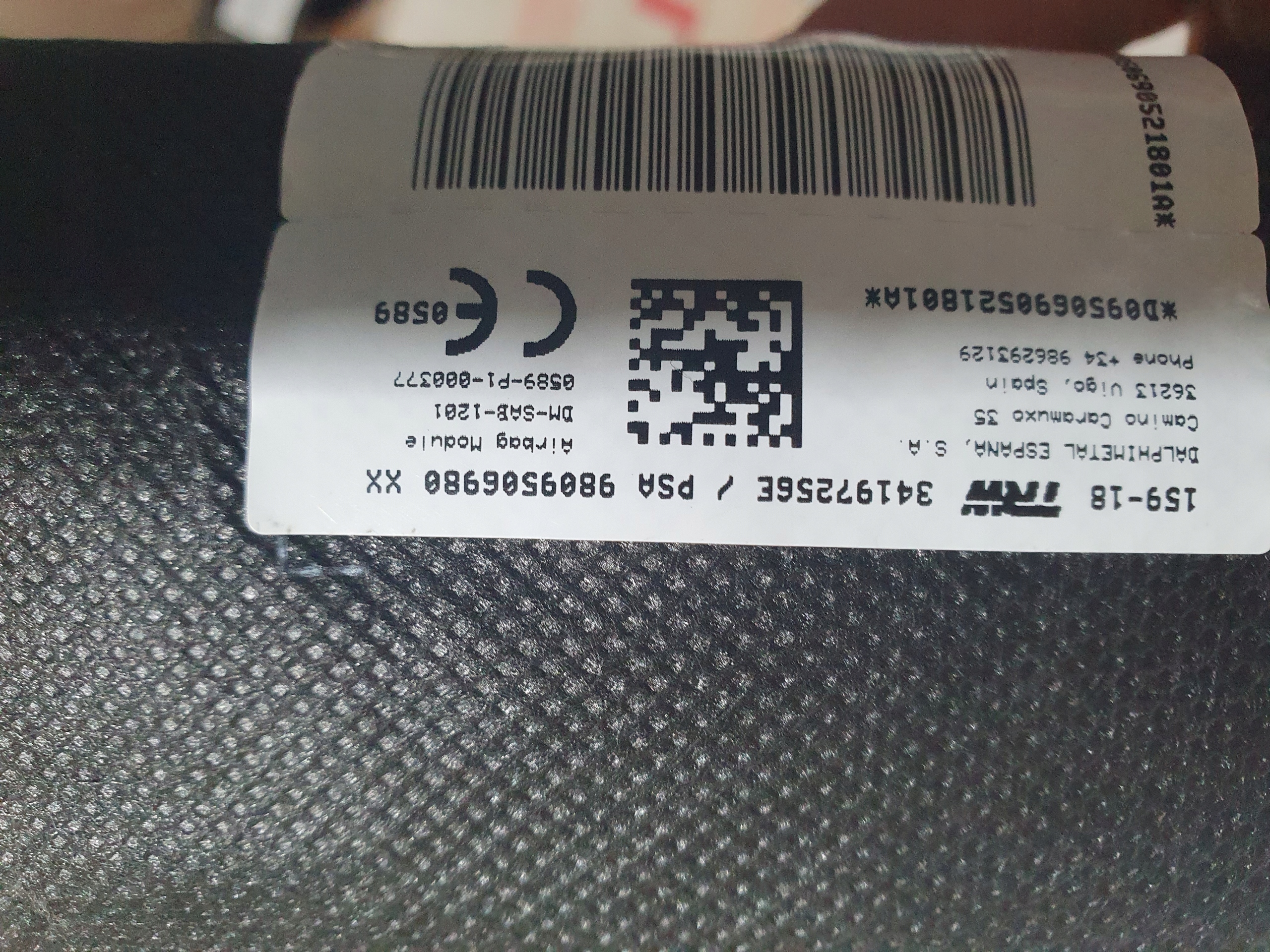 PODUSZKA FOTELA PRAWA AIRBAG PRAWY PEUGEOT 508 II 2 ORG 9809506980