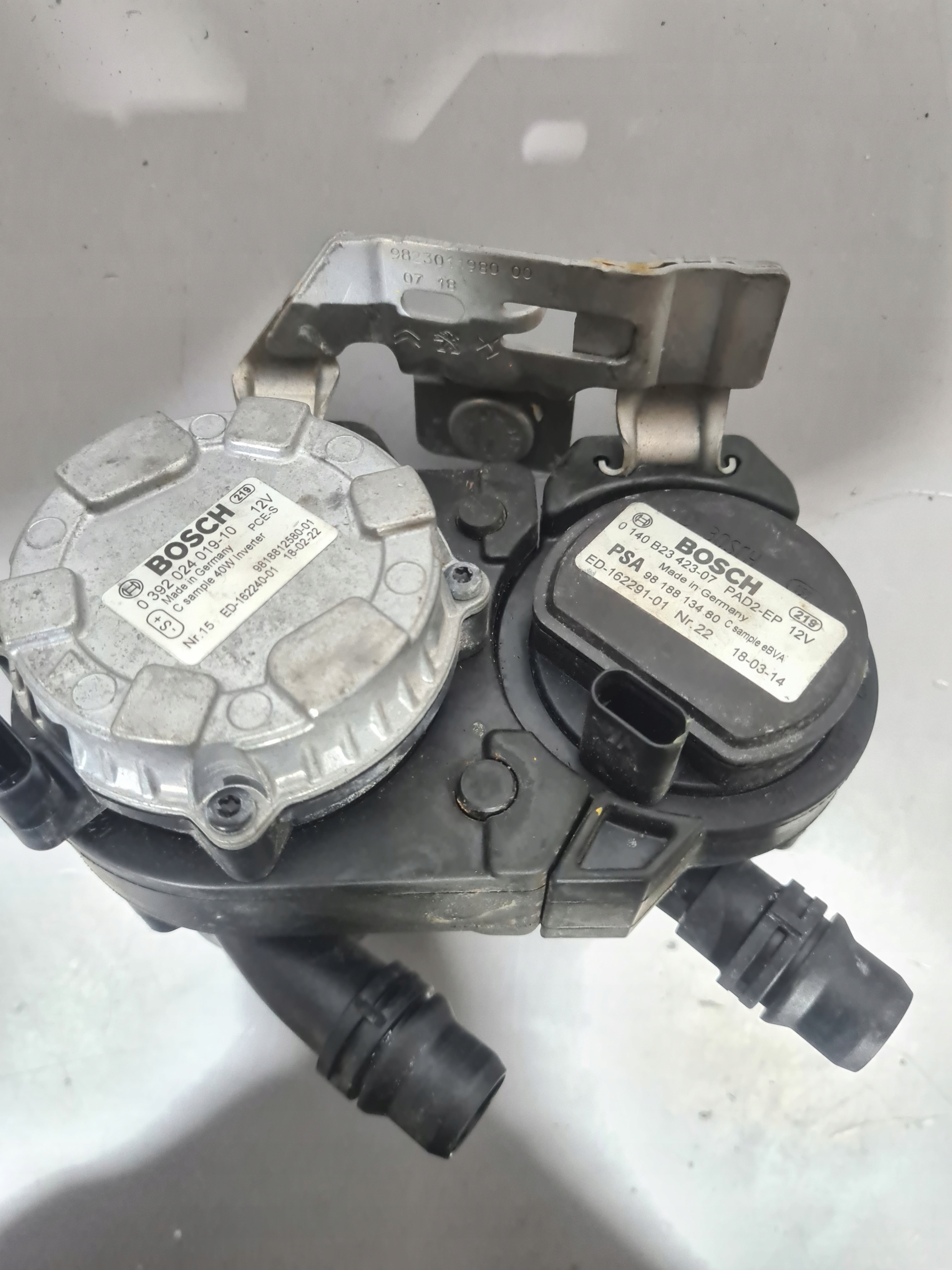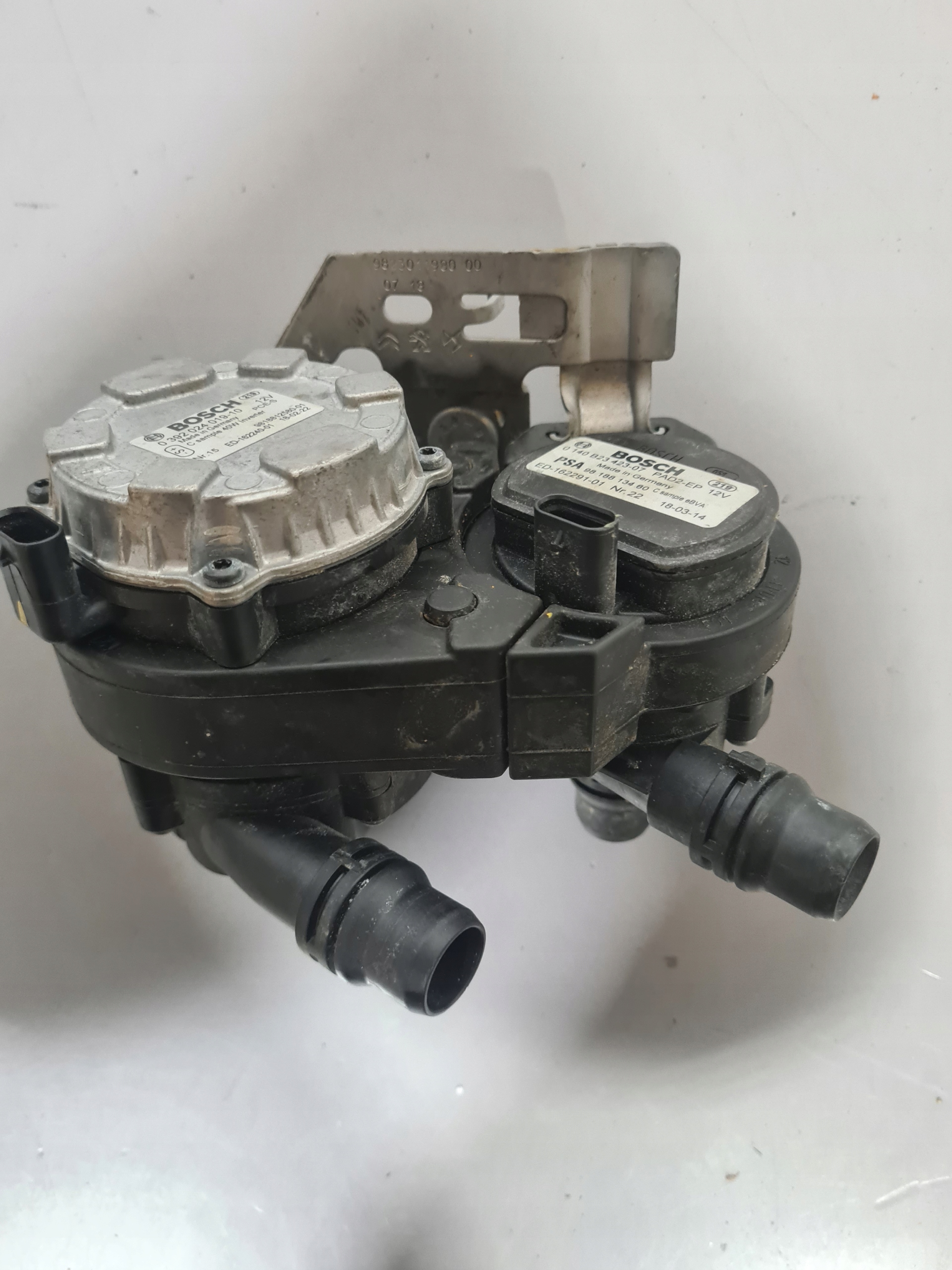 Przedmiotem aukcji jest komplet dwóch pomp obiegu wody Bosch pasująca do grupy PSA -DS , Citroen , Peugeot z silnikiem 1.6 THP Hybryd, stan bardzo dobry , oryginał o nr 9818812580.